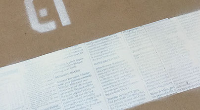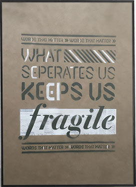 Much like every previous version of these Delta posters I added something new for What Keeps Us Fragile. In this version I explored adding more texture with the introduction of using newsprint. For these posters I took cropped out sheets of newspaper spray mounted it to the kraft paper and gave it a light coat of white spray paint. Then added a color stencil overtop of it.