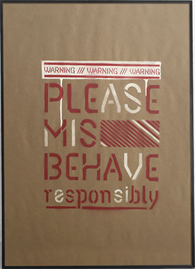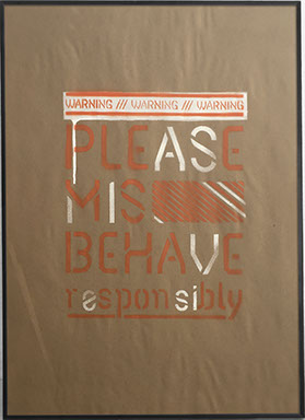 The last of these Delta posters on kraft paper Mischief is using all of the different features of the previous posters. For this one I want to add a third color, this brown that comes close to the color and texture of the kraft paper. Using it for those diagonal graphic elements helps give those elements and the poster in general depth and an added twist.