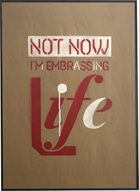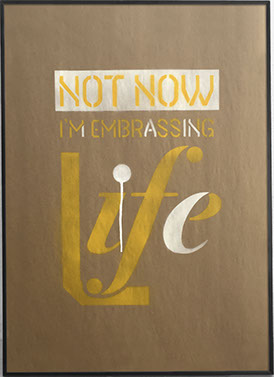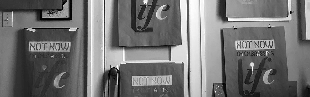 Not Now is the second exploration in this series. Similar to the Doing It Right where I’m using two colors and offsetting each stencil. But with this version instead of choosing whole letters to choose for the white color on this one I started only using parts of whole letters. This was also the first time I overlay colors on top of each other. For example the words "not now" overlaid onto the white.