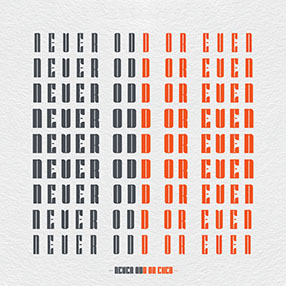 Using palindromes can highlight a typeface by using repeated characters, creating texture and rhythm, and, in some cases, different styles of the typefaces. For example take the palindrome PALS and SLAP. I used that for an exploration with my typeface Ruins, shown to the right. It plays with texture and rhythm, but at the same time is a fun way to show off the oddly designed lowercase P in that character set. Another way of using palindromes is in the sentence Never Odd Or Even, where NEVEROD spelled in reverse order-DOREVEN-completes the sentence, repeating it over and over in different weights like I did in the Ponti Sample. in that example I'm showcasing the different weights and controlled set of characters. Another example of highlighting styles can