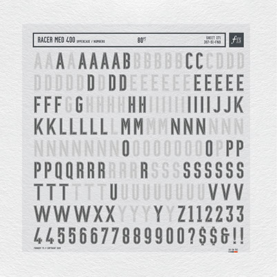 Another avenue I started going down was how letterforms can relate or mirror one another. Simple ideas like how the lowercase B, D, P, and Q relate to one another. Then exploring the rhythmic nature of pairing them all together like in the Falcon SR sample below. This is the same idea I started exploring with the Blockhead sample. There I’m looking at how the F and L relate to the E. But in this piece I'm taking advantage of the different styles in the Blockhead typeface to highlight that relationship. Utilizing some of the styles on my typefaces to help visually show these relationships came in very handy sometimes, like in the Racer sample below. Using three of
